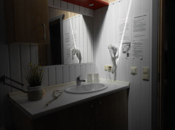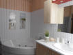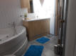 Das Badezimmer verfügt über einen Whirlpool, eine Dusche, sowie ein WC, ein Bidet und ein großes Waschbecken. Hier befindet sich auch die Sauna.